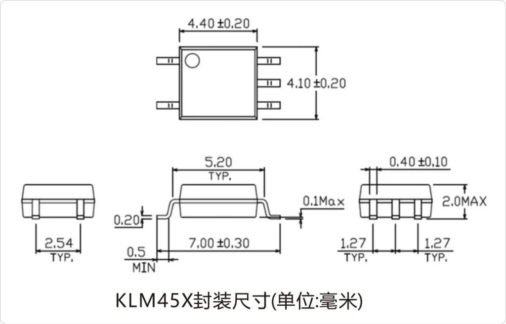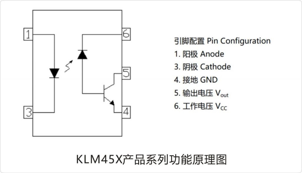 KLM452 和 KLM453 器件均由一个红外发射二极管与一个高速光电检测晶体管组成,两者之间光学耦合。光电二极管偏置和输出晶体管集电极的独立连接可以通过减少输入晶体管的基极-集电极电容来使速度比传统的光电晶体管耦合器提高几个数量级。它们采用行业内标准的 5 引脚 SOP 封装,适合表面帖装。