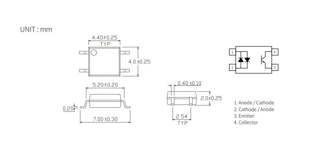 | KL357NHB | SOP4 | 4.4x4.1x2.0 | 1.2 | 80 | 0.3 | 5 | 130~260 | 6 | 8 | - | - | -55 | +125 | 3750 |