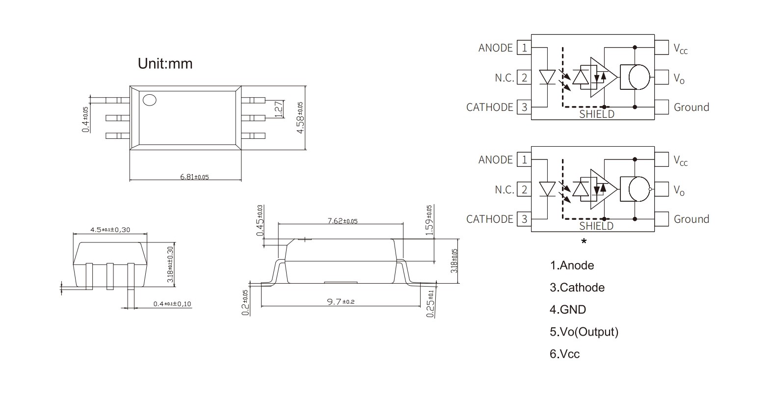 | Product | Package | size(LxWxHmm) | IFon Min (mA) | CTR (Min) (%) | CTR (Max) (%) | tPHL Max (us) | tPLH Max(us) | PDD Max (us) | CMR(V/us) | Viso@lmin (Vrms) |