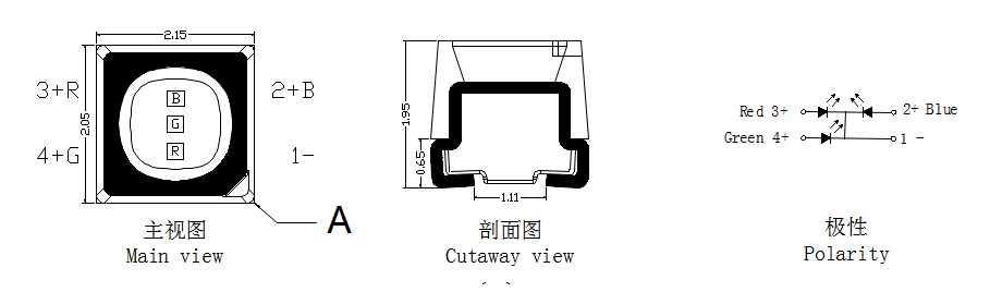 • 采用共阴结构,R与GB双电源分开,降低模组功耗的同时降低屏体温度