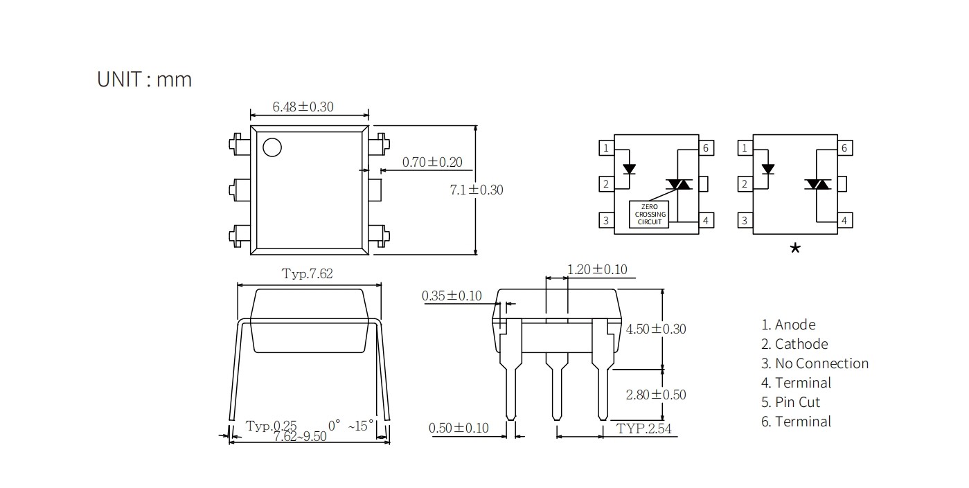 | Product | Package | size(LxWxHmm) | VF(V) | VDRM(Max) (V) | VTM(V) | VINH(V) | IT (rms)(mA) | IFT(mA) | Topr (Min) (degC) | Topr (Max) (degC) | Viso (Vrms) |