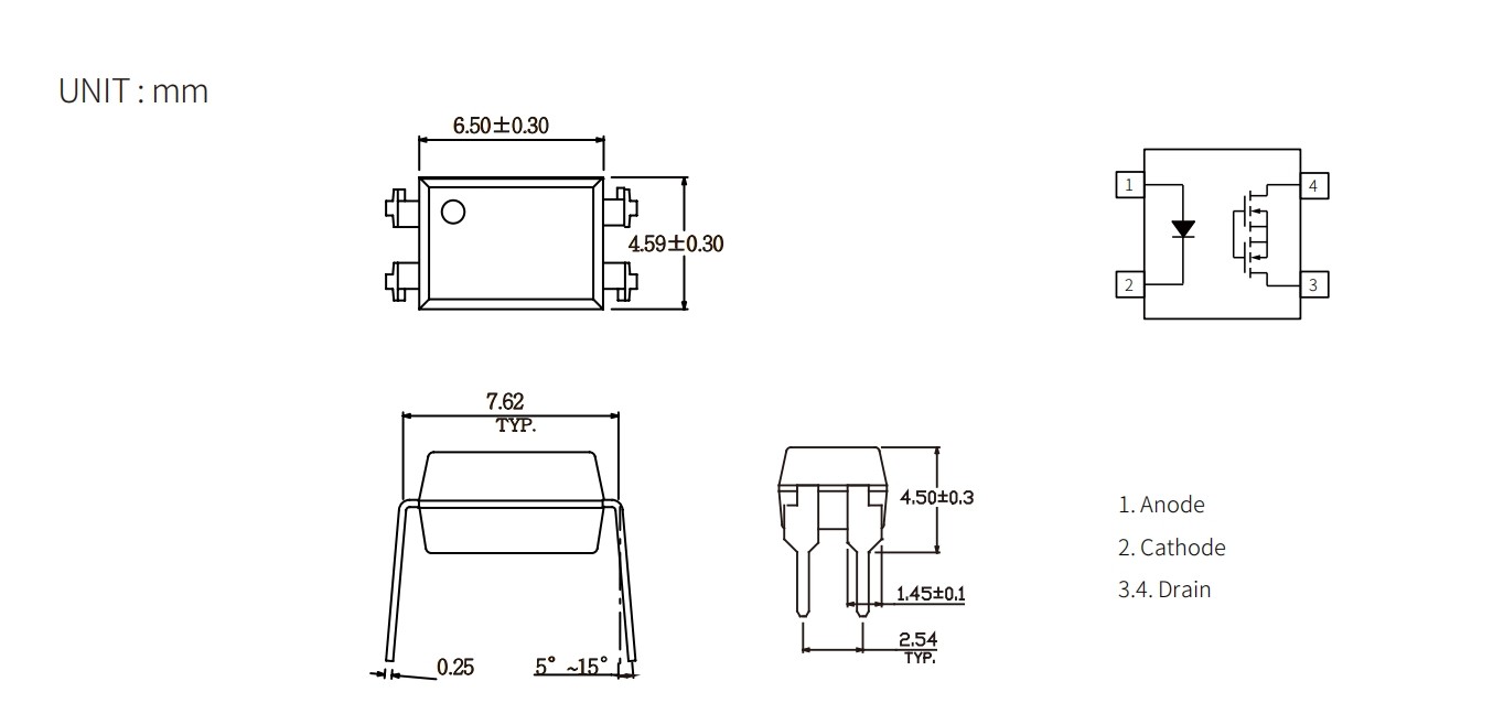 | KL406A | DIP4 | 6.5x4.58x3.5 | 60 | 550 | 0.7 | 5 | -40 | +85 | 5000 |