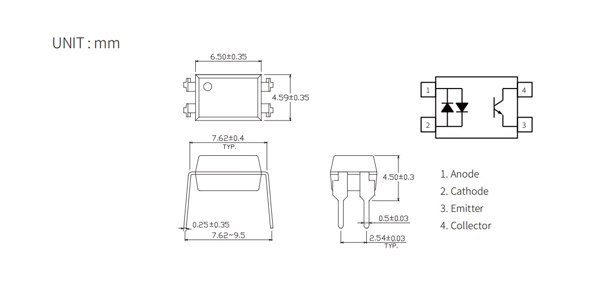 | KL814 | DIP4 | 6.5x4.58x3.5 | 1.2 | 80 | 0.2 | ±1 | 20~300 | 18 | 18 | - | - | -55 | +110 | 5000 |