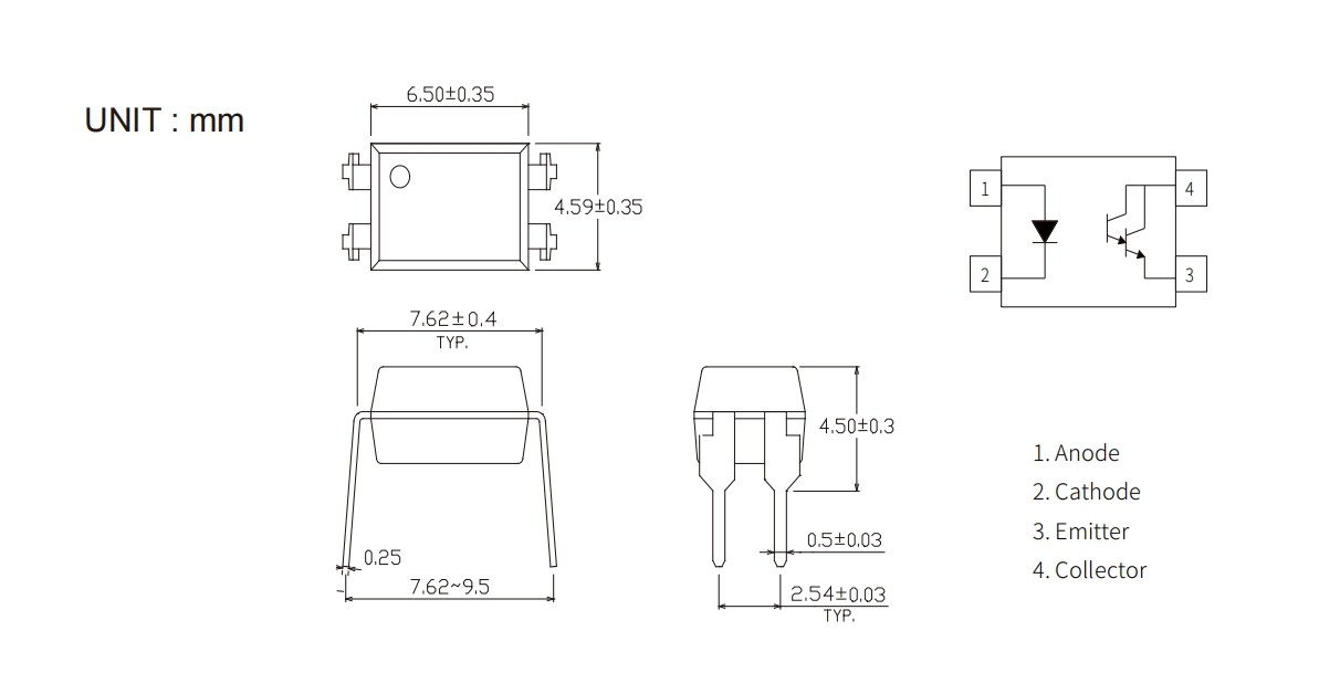 | KL815 | DIP4 | 6.5x4.58x3.5 | 1.2 | 35 | 1.0 | 1 | 600~7500 | 60 | 53 | - | - | -55 | +110 | 5000 |