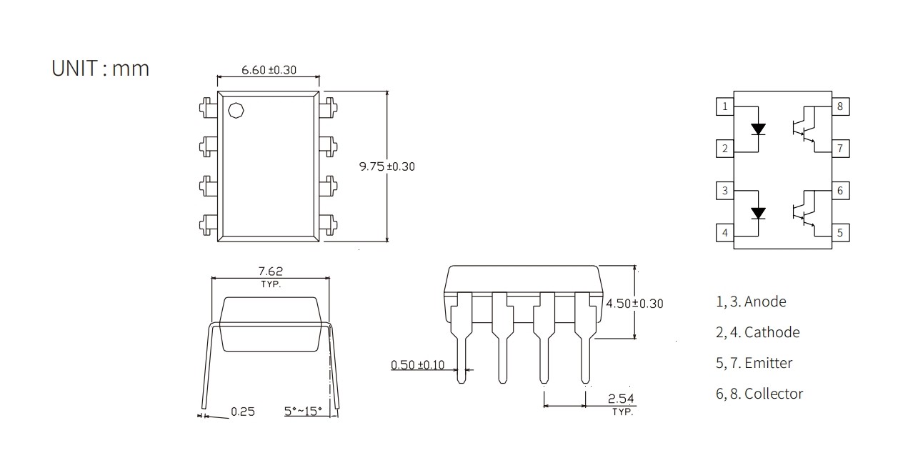| KL825 | DIP8 | 9.75x6.6x3.5 | 1.2 | 40 | 1 | 1 | 600~7500 | 60 | 53 | - | - | -55 | +110 | 5000 |