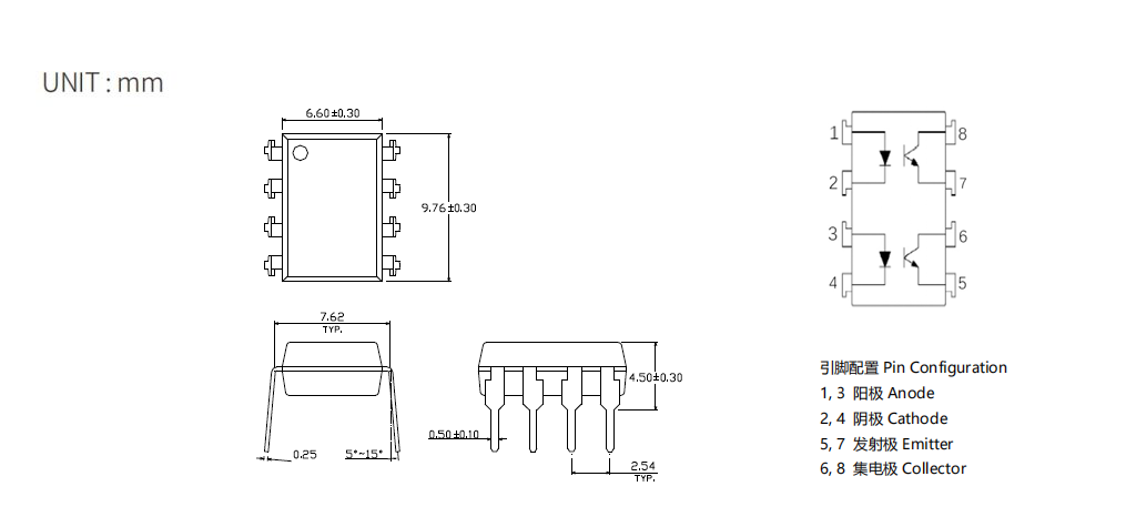 | KL827 | DIP8 | 6.6×9.76×3.5 | 1.2 | 80 | 0.2 | 5 | 50-600 | 3(Typ) | 4(Typ) | - | - | -55 | +110 | 5000 |